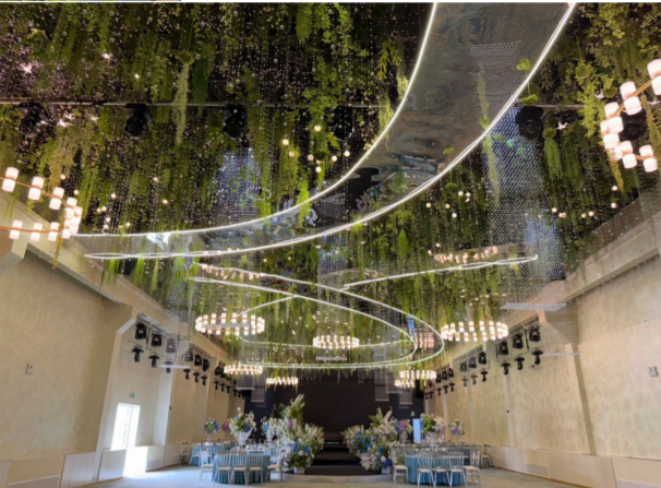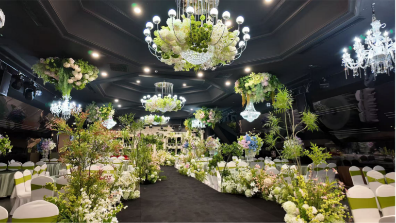 设有40.5㎡超清P2.5级LED⼤屏,画质细腻以及配备全厅环绕式线阵音响。超美双边楼梯出场方式,配有激光钻石灯光雨效果,结合精心设计的舞美灯光,让每位新人都有高光时刻。
