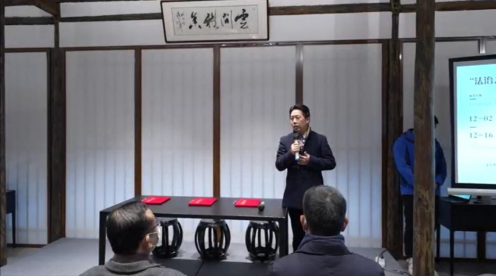 为庆祝党的二十大胜利召开,迎接全国第9个宪法宣传日、上海市第34届宪法宣传周的到来,进一步加强居民“尊法、守法、学法、用法”意识,由中共上海视觉艺术学院委员会统战部、中国民主建国会上海市松江区委员会、广富林街道党工委全面依法治理委员会主办,中国民主建国会松江区委法制工作委员会、松江区司法局广富林司法所承办,“法治之旅,朵云之约,书香之恋”普法宣传主题展活动于上海之根——广富林文化遗址中的朵云书院举行。活动由民建松江区委法制工作委员会主任沙剑律师主持。