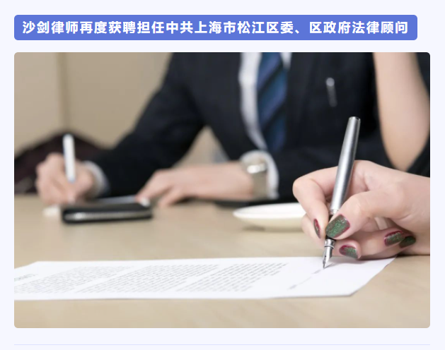 |以恒沙剑律师再度获聘担任中共上海市松江区委、区政府法律顾问