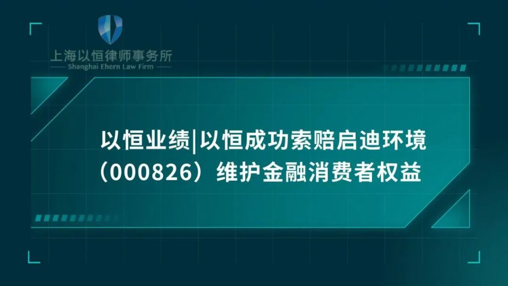 |以恒成功索赔启迪环境(000826)维护金融消费者权益